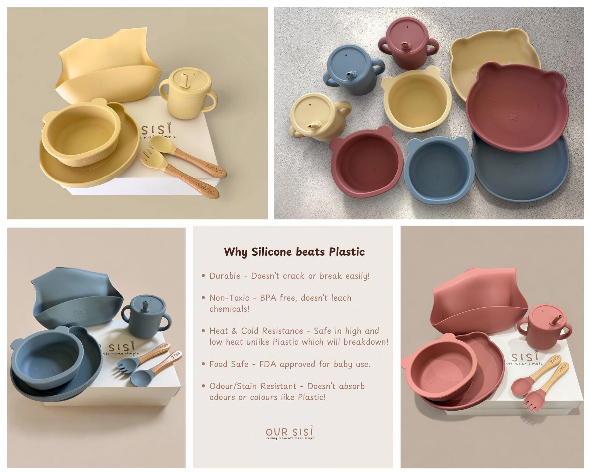 Our Sisi offers a safe and durable silicone baby tableware set designed to make feeding time simple, clean, and enjoyable for parents and little ones alike.